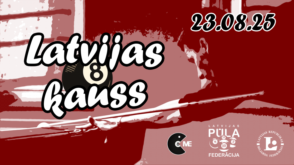 Latvijas kausa turnīri Rīgā turpinās ar disciplīnu POOL8! Spēles notiks biljarda sporta klubā “BAMS Pool House” (Cēsu iela 18), š.g. 23.augustā. Klubs atveras 10:00, reģistrācija līdz 10:45, spēļu sākums 11:00. Dalības maksa 20EUR (līdz 18 gadiem 10EUR).