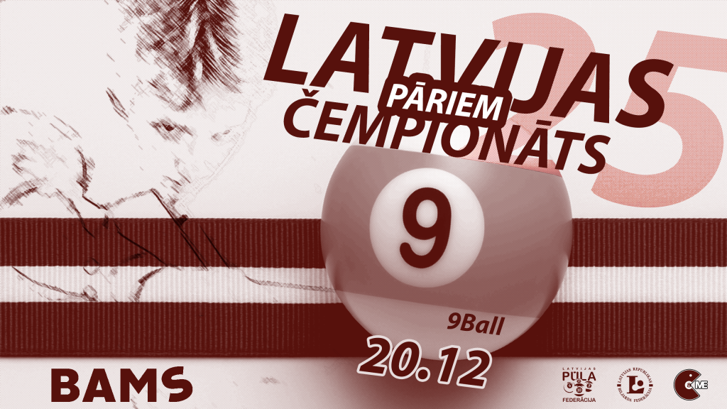Aicinām piedalīties 2025.gada atklātajā Latvijas čempionātā pūlā Pool9 pāriem, kurš notiks š.g. 20.decembrī «BAMS Pool House» Rīgā, Cēsu ielā 18, reģistrēšanās sākums 09:00, spēļu sākums 10:00. Pārus kopējā turnīrā var veidot jebkuri spēlētāji bez ierobežojumiem, savukārt mix pāru turnīrā komandā jābūt sievietei un vīrietim. Komandu sastāvi abos turnīros var sakrist vai var veidot dažādus pārus.