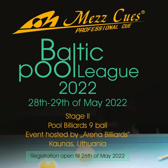 2022.gada 26.-27.maijā | 9:00 | Arena Billiards, Savanorių ielā 363, Kauņa, Lietuva