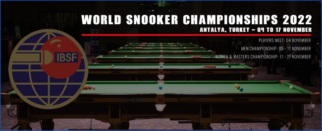 PASAULES ČEMPIONĀTS SNŪKERĀ 2022 lrbf_newsBy editor16/10/2022ANTĀLIJA, TURCIJA 2022.gada 4.-17.novembris